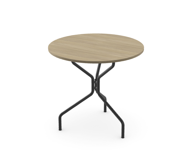 A round table with a top diameter of 80 cm, on a silver or black metal frame.